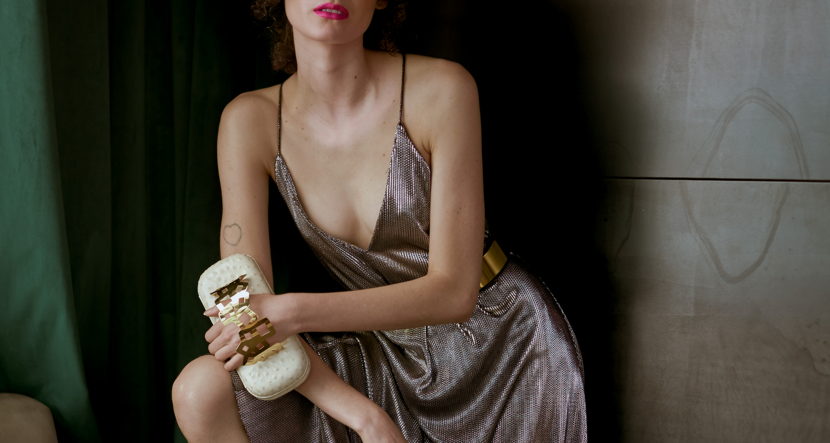 The lizard-effect print on the smoothest calf leather adds up to the whole playful vibe of the clutch making it pop even more when you are holding it. The elongated oval shape easily holds all the essentials; a lipstick, your cellphone and a credit card. Get ready to go hands-free and dance the night away!