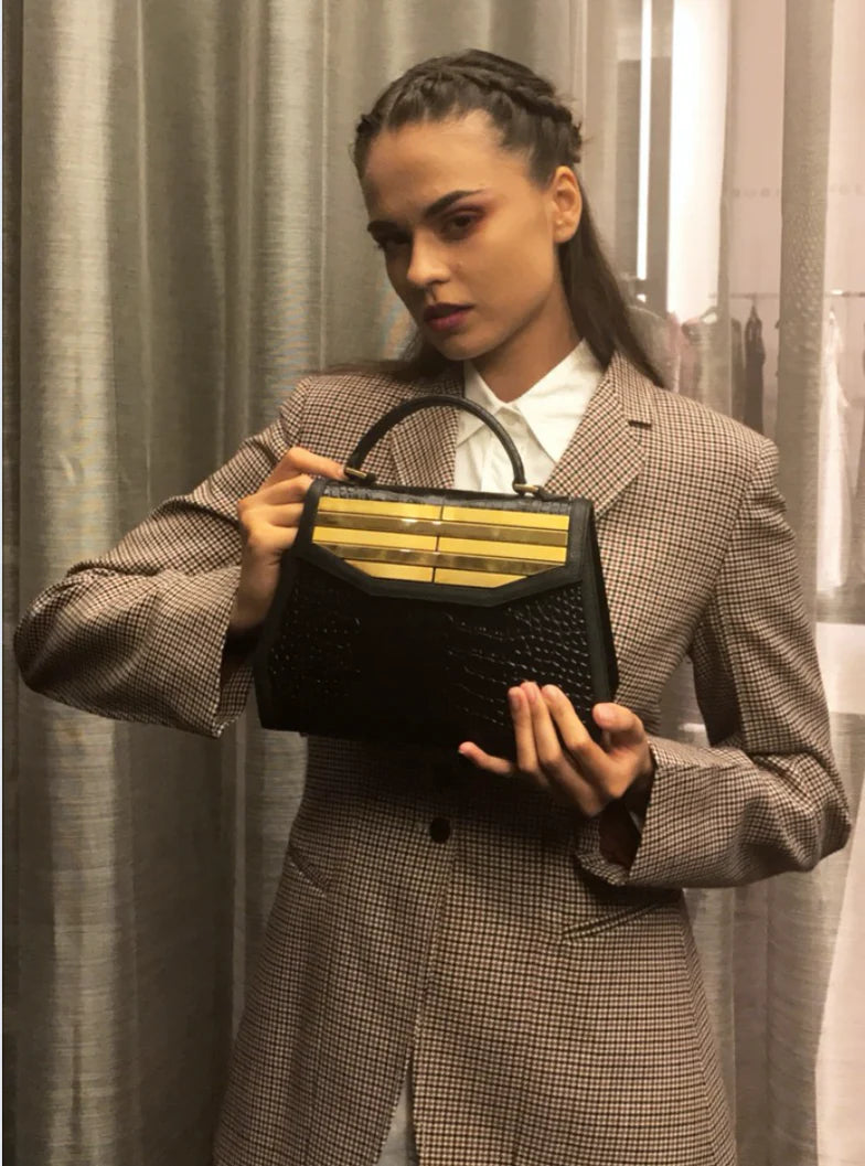 Rula Galayini is a reflection of the woman who wears it: strong, edgy, and sensual; a power-bag and a contemporary statement piece. Her collections are designed for the everyday, yet tailored for the surprises that one never expects. With its playful metal work, buttery leathers, streamlined geometric designs and contrasting colors, her bags are as distinct and remarkable as the women who carry them.